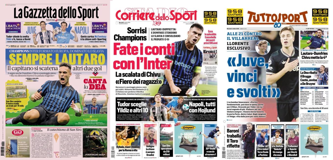 Inter w świetnym stylu zwyciężył Slavię Praga 3:0 na San Siro. Bohaterem wieczoru był Lautaro Martinez, autor dubletu, a wynik ustalił Denzel Dumfries. La Gazzetta dello Sport w tytule na pierwszej stronie podsumowała mecz: „Sempre Lautaro”. Drużyna Cristiana Chivu ma komplet punktów.
