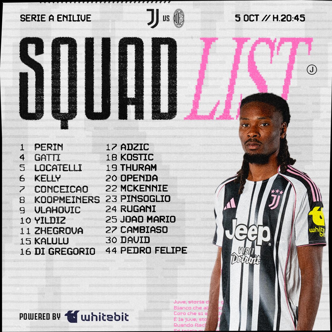 Igor Tudor podał już listę zawodników powołanych na dzisiejszy mecz z Milanem. W kadrze nadal brakuje Milika i Mirettiego, a po kontuzji odniesionej w meczu z Villarreal wypadł także Cabal. Do gry gotowy jest za to nieobecny ostatnio Thuram, ale niepokoi brak Bremera, bez którego formacja defensywna radzi sobie zdecydowanie gorzej.
