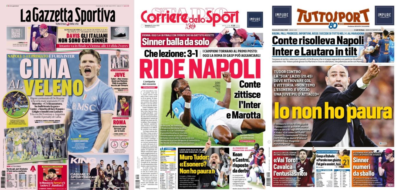 Wieczór pełen emocji – La Gazzetta dello Sport opisuje starcie Interu z Napoli jako mecz, w którym „nie zabrakło kontrowersji i napięcia”. Marotta nie krył frustracji po meczu: „Jest w nas wściekłość, sędzia ustawił to spotkanie”. Antonio Conte odpowiedział ostro: „Niech przestanie zachowywać się jak ojciec wszystkich”. Atmosferę podgrzała także kłótnia między Conte a Lautaro Martinezem, która zakończyła się wzajemnymi obelgami.