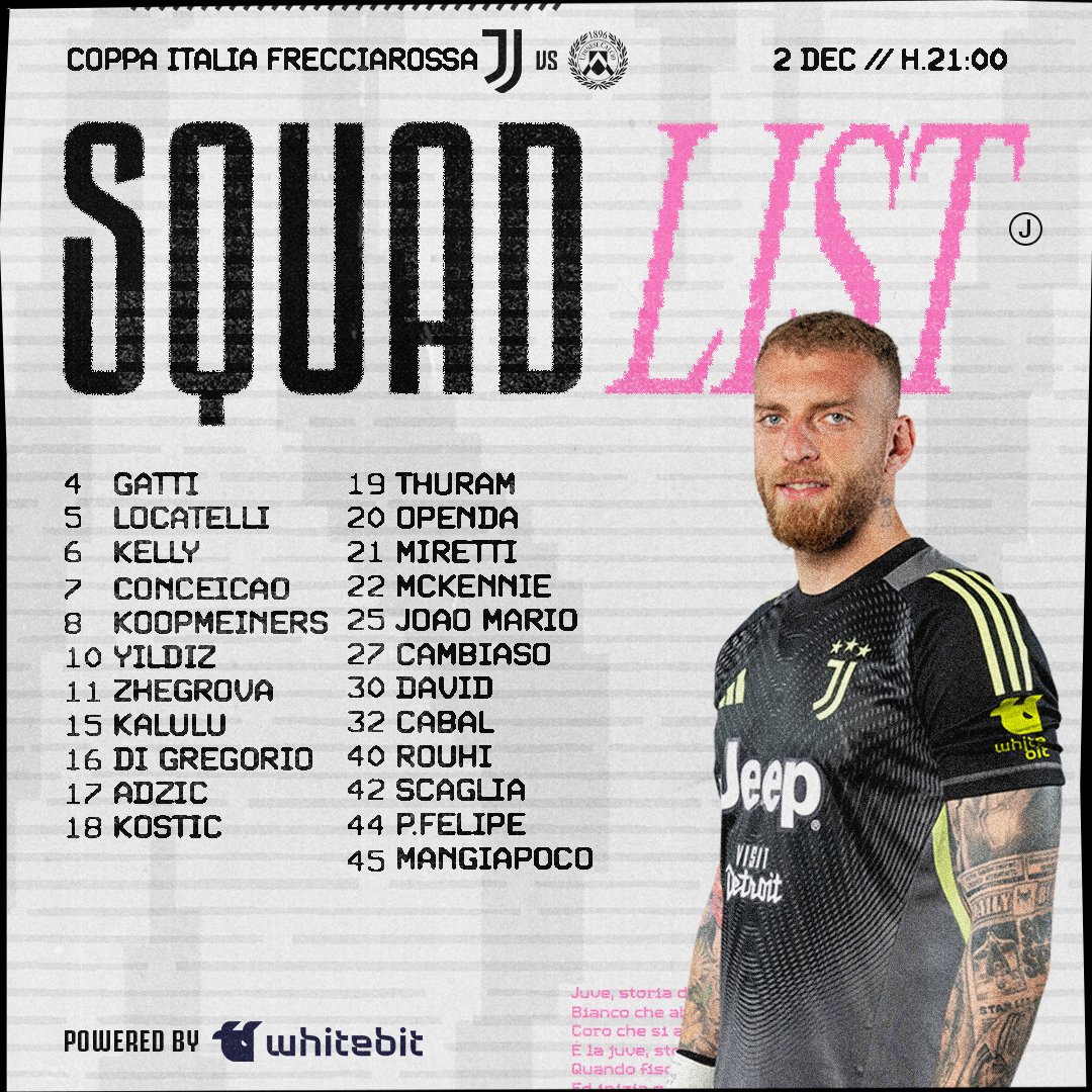 - Pomocnicy: Locatelli, Koopmeiners, Thuram, Kostić, Adzić, McKennie, Joao Mario, Miretti