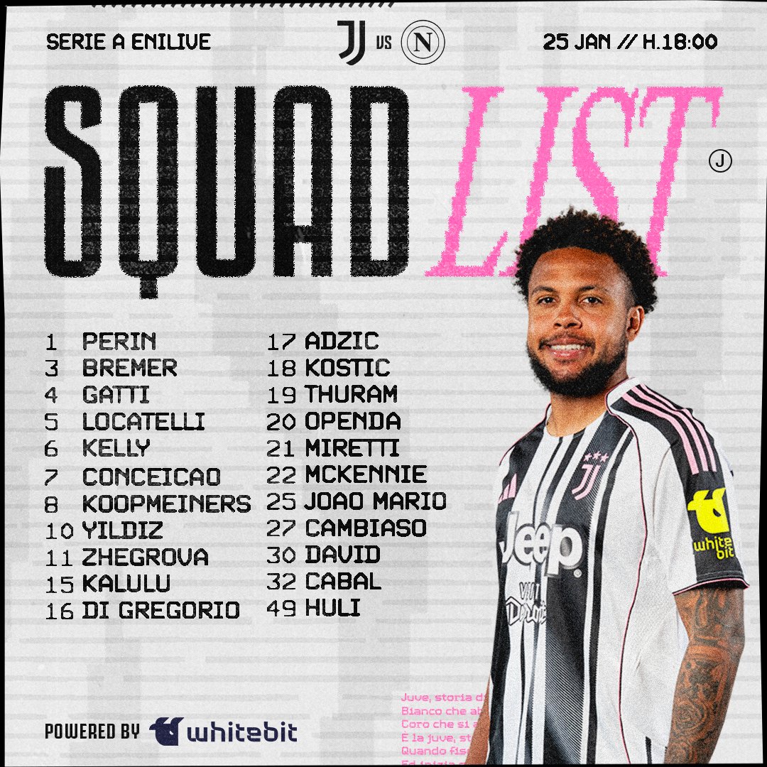 • Pomocnicy: Locatelli, Conceicao, Koopmeiners, Adzić, Kostić, Thuram, Miretti, McKennie, Joao Mario